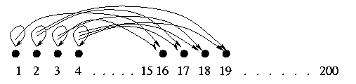 Connections (unidirectional) between nodes: Each node takes input from some specified number of other nodes. The number of connections leading into a node is conventionally expressed by the variable K. In a net, all nodes may take the same number of inputs, (K = 2, 3, 4, ... ), or, a possibility less often explored, varying numbers of inputs.